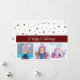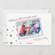 Remplacez les photos de cette carte de voeux par vos photos préférées pour en faire la vôtre ! Vous pouvez également changer le message de la carte d’entrée de "Joyeux Fêtes" en "Joyeux Noël", "Salutations de saison" ou votre propre texte. Le dos est également personnalisable et vous permet d'aller avec l'actuel "Wishing you all the best of the seasons" ou de mettre à jour votre propre texte, ainsi que de remplacer la photo arrière et l'approbation à celle de votre propre. Surligné sur le devant avec une bande rouge foncé foncé pour faire ressortir le salut avec un arrosage d'étoiles au-dessus. Voir plus d'étoiles sur le dos menant à la photo arrière.
