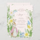 Pierre rose le lapin parmi de belles fleurs de printemps dans les couleurs pastel Baby shower Invitation
