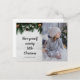 Carte postale rustique avec des braches de pin festives et vous photographie personnalisée. Texte modifiable : Nom, salutations sur le dos,...