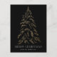 Carte postale de vacances moderne et élégante, avec un pin d'arbre en feuille d'or en faux neige et un arrière - plan noir (ou la couleur de votre choix). "Joyeux Noël" est affiché dans une police serif blanche et moderne avec votre nom ou texte personnalisé ci-dessous. La carte de vacances non photo s'inverse pour afficher votre adresse de retour et votre message personnalisé. Ce design est parfait pour utiliser comme carte de Noël familiale ou carte de vacances d'entreprise ou d'affaires.