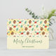 Une carte de vacances à l'air plat avec un motif mignon avec des cônes de pin et un saint sur un arrière - plan jaune aquarelle avec des petits cercles blancs éparpillés autour.