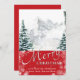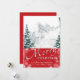Carte postale moderne Red Pine Tree Snowflakes Bokeh Chic Script Minimalist Holiday. Souhaitez-vous à tous un Joyeux Noël et Bonne Année! !