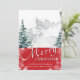 Cartes Pour Fêtes Annuelles Pine rouge moderne Snowflakes Bokeh Chic Script