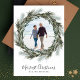 C'est un beau carte photo de vacances chic shabby avec une esthétique blanche moderne et propre. Aquarelle peinte détail Pine Wreath Noël. vacances18
