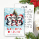 Cette carte de Noël unique "Merry & Bright" présente l'illustration de trois pingouins en chapeaux rouges du Père Noël décorant un arbre de Noël conçu sur un arrière - plan bleu neigeux. Personnalisez ces Cartes de fin de année en utilisant le modèle en tapant votre nom de famille, votre année et vos salutations. A l'arrière, il y a un calendrier 2026 (du dimanche au samedi) qui rend les cartes pratiques pour toute l'année.