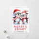 Laissez ces patineurs de pingouins mignons en chapeaux de Santa rouge, foulards et patins à silhouette vous aider à envoyer à vos proches les souhaits et salutations les plus chaleureux. Cette carte festive de Noël blanc et rouge dans un style minimaliste moderne avec le dicton "Merry & Bright" a un texte modèle où vous pouvez taper vos salutations, nom de famille et année. A l'arrière, il y a un calendrier 2026 (du dimanche au samedi) qui rend les cartes pratiques pour toute l'année.