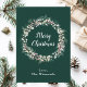 Cette carte de Noël amusante et festive peut être personnalisée avec un nom ou un titre. Il présente une couronne de Noël aquarelle avec houx rose et baies sur un arrière - plan vert foncé. Le texte combine écriture manuscrite et polices serif modernes pour un look élégant et sophistiqué.