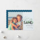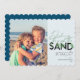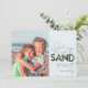 Une carte de vacances moderne avec un message simple et minimal qui dit "Dashing through the sand" avec des palmiers combinés à de la typographie manuscrite. Personnalisez avec vos noms et votre photo préférée. Photo Vitolda Klein sur Unsplash