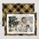 Cette Black Gold Modern Elegant Plaid Christmas Holiday Card allie charme classique et touche tendance. L'élégant Buffalo Plaid en noir et or crée une ambiance chaleureuse et festive, parfaite pour envoyer des réjouissances de vacances. Avec un modèle photo facile à utiliser, il est simple de personnaliser avec votre moment familial préféré. Que ce soit pour les fêtes de Noël ou l'envoi de voeux de vacances réfléchis, cette carte ajoute une touche moderne et élégante à la saison.