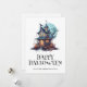 Belle carte d'Halloween avec une maison hantée, citrouilles et la pleine Lune. Personnalisez facilement cette carte d'Halloween aquarelle avec votre nom de famille et votre texte.