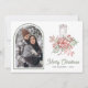 Elégante carte de Noël ornée d'une bougie blanche ornée de fleurs de poinsettia et de feuilles saints. Ajoutez simplement votre texte sur ce modèle facile à utiliser et ornez cette carte avec votre photo préférée pour en faire une carte de vacances unique.