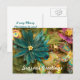 This postcard features a photo of poinsettia made out of feathers. A peacock feather peeks out from behind and other beautiful pretty ornaments surround the flower. Customize this postcard with your personal message.