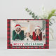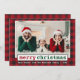 Police de machine à écrire tendance, moderne Joyeux Noël Photo Green et Red Holiday Card - Rustic Red Plaid
