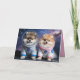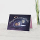 A dog Valentine's Day card featuring a Pomeranian couple in a flying saucer going to the moon.
