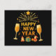 Celebrate the New Year with this warm golden festive illustration featuring Santa figures, gifts, shining stars, and elegant party elements. A bright and joyful design that adds a magical touch to every New Year celebration