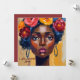 Célébrez la beauté africaine avec ce tableau numérique audacieux d'une femme noire couronnée de fleurs vibrantes. Un parfait mélange de pouvoir et de grâce pour vos proches.