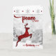 Belle carte de voeux de vacances pour offrir vos souhaits pour une saison paisible à votre professeur de yoga. Les teintes rouges foncées saisonnières sont festives et les rennes bondissants dressés contre un paysage hivernal enneigé créent un sentiment de bien-être.