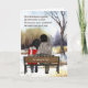 Une scène hivernale romantique mettant en vedette un jeune couple blotti sur un banc regardant la neige tomber sur un paysage campagnard désolé. Le message romantique et le sentiment sont sûrs de plaire à votre femme.