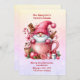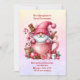 Un mignon placard de gnome rose entouré de cadeaux et de bonbons, avec un message de maman & papa. Le verso de la carte contient également un message. Arrière - plan est un papier brillant