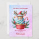 Un cerf mignon avec des bois assis dans un délicieux cupcake et un sucre de canne avec un message de maman et papa. Le verso de la carte contient également un message. Arrière - plan de couleur étincelante