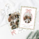 Ajoutez une touche de charme à vos salutations de vacances avec cette carte de Noël arc rose d'inspiration vintage. L'avant présente votre photo de famille encadrée dans un dessin blanc dessiné à la main et surmonté d'un arc rose doux. Le dos offre de l’espace pour quatre photos supplémentaires et un court message chaleureux, parfait pour partager les meilleurs moments de votre année d’une manière élégante et mémorable