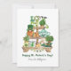 Carte mignonne de la Saint-Patrick avec une illustration d'un présentoir à bibelots irlandais rempli de curiosités amusantes ainsi que les mots "Joyeuse Saint-Patrick!". Personnalisez-la avec votre propre message et vos noms ou laissez-la en blanc pour écrire votre propre texte. Parfait pour souhaiter à vos proches un peu plus de chance cette année.