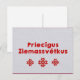 Jolie salutation traditionnelle de Noël Joyeux dans la carte lettone Priecīgus Ziemassvētkus avec motif folklorique traditionnel et belle texture couleur lin.
