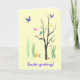 Cette carte de Pâques crée une humeur colorée et lunatique de ressort. Les oiseaux volent et sont étés perché dans l'arbre. Les papillons planent dans le ciel chaud. Un canard se dandine dans l'herbe. Il y a même un escargot minuscule au sol. L'image est répétée à l'intérieur. Tout le texte peut être customisé pour adapter à vos besoins.