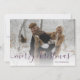 Cartes personnalisées de Noël violet avec titre en écriture manuscrite sur le devant et motif en plaid en vichy violet et blanc à l'arrière. Personnalisez facilement ces cartes de Noël en plaid violet avec votre image et un nom de famille.