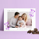 Le mignon carte photo de la Saint-Valentin met en vedette votre photo horizontale au centre, ornée de coeurs violet clair et foncé aux coins. Personnalisez le design en ajoutant votre nom, l'année et un accueil personnalisé. La carte s'inverse pour afficher une photo supplémentaire.