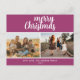 Purple Joyeux Noël Famille 2 Photo Holiday Carte postale. Ajoutez 2 photos et du texte, et faites une carte de Noël familiale tendance et chic et personnalisée.