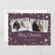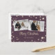 Carte postale de Noël magique avec flocons de neige et étoiles. Créez une belle carte postale de Noël en violet pour votre famille et vos amis. Personnalisez facilement cette carte postale de Noël étoilée avec votre nom de famille, 3 photos et un message.