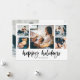Cette simple et classique carte de vœux de Noël familiale noir et blanc présente une typographie moderne et décontractée qui dit "Joyeuses Fêtes", avec une grille multi-photos de cinq photos sur le devant et une autre au dos.