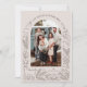 Carte de Noël avec la mention "Que le Ciel et la Nature chantent Carte de vacances" et des animaux de la forêt illustrés et des anges en arc de cercle autour de votre photo de famille.