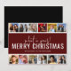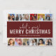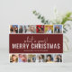 Une carte de Noël moderne en forme de collage de photos, comprenant 12 de vos photographies préférées de l'année, dans le style d'une bande de photos, sur un fond rouge avec un modèle de vœux de Noël. Les styles de police et la couleur de fond peuvent être modifiés facilement en cliquant sur le lien Personnaliser davantage après la personnalisation.
