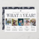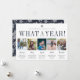 Unique design de carte de vacances moderne comprend cinq photos préférées avec des légendes personnalisées, avec votre nom de famille et "quelle année !" ci-dessus. Créez une carte de style année en revue attrayante pour votre famille et vos amis en partageant des photos des moments spéciaux de votre famille et en les décrivant avec nos modèles texte personnalisés. Des lettres marines et grises aux accents manuscrits confèrent à ce carte photo de vacances une atmosphère moderne et minimaliste. Les cartes retournent à un motif de flocons blancs sur le bleu marine riche.