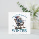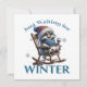 Célébrez l'esprit cosy de la saison avec cette charmante carte de Noël avec un raton laveur fantaisiste allongé sur une chaise à bascule, balançant doucement tout en savourant un verre de vin rouge. La légende ludique, "Juste attendre l'hiver" ajoute une touche d'humour et de chaleur, parfaite pour répandre l'acclamation à des amis et à une famille qui aiment les choses plus fines (et plus douces) dans la vie