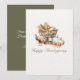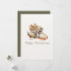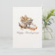 Célébrez l'abondance de la saison ! Cette charmante carte de Thanksgiving à l'aquarelle présente un chariot rustique charmant débordant d'une riche récolte de maïs, de citrouilles et de feuilles d'automne. Un dindon traditionnel et une lanterne chaude complètent cette scène invitante, qui transmet parfaitement l'esprit de la fête de la récolte. Fond uni au verso avec un message et une signature personnalisables. Envoyez vos vœux les plus chaleureux pour une fête de Thanksgiving joyeuse et abondante !