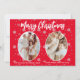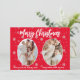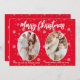 Carte de Noël moderne 2 photo avec flocons de neige motif sur arrière - plan rouge avec Joyeux voeux de Noël dans la typographie artistique blanche.