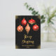 Send warm holiday wishes with this sophisticated Christmas postcard featuring five elegant ornaments in red and gold tones. Each ornament showcases a unique design - floral, snowflake, dripping faux glitter, diamond pattern, and stars - against a rich black background with golden sparkles. The luxurious palette and refined layout make this card ideal for stylish families, formal greetings, or corporate holiday messages. Perfect for those who love modern elegance with a festive twist.