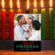 Ce carte photo moderne de Kwanzaa dispose d'une seule photo verticale, d'une typographie moderne, avec un motif rouge, noir et vert à l'arrière. Le message d'accueil sur le devant indique "Happiest Kwanzaa" en rouge et vert. Le motif du dossier peut être supprimé ou customisé. Vous pouvez également ajouter une autre photo ou un autre texte au dos !