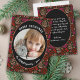 Festive Rouge Noir Une ligne art Noël Famille Carte photo. Une ligne art en rouge et rose sur arrière - plan noir. Design festif et moderne de vacances avec une photo dans un cadre rond. Ajoutez votre photo, votre nom et votre texte à l'arrière.