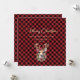 Elégante carte de Noël de buffle rouge et or, avec une silhouette de rennes d'or et une vignette de neige sur un arrière - plan de buffle rouge et noir. Un faux titre en feuille d'or écrit à la main ajoute un look plus festif à cette carte de vacances. Personnalisez facilement cette carte rouge plaid avec votre nom de famille et votre texte. L'effet de feuille d'or n'est simulé que dans l'illustration.