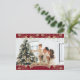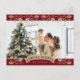 Elégante carte postale de Noël en couleur rouge avec houx doré et baies. Personnalisez facilement cette carte postale de Noël chrétienne avec votre photo, le nom de famille et le message personnel. Carte postale de Noël rouge et or.