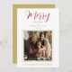 Simple Minimalist Merry Christmas Photo Holiday Card with Envelope in Red and Fake Gold.