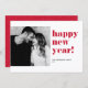 Bonne année ! Envoyez des voeux de vacances à vos proches avec cette carte à plat moderne et personnalisable du Nouvel An. Il présente une typographie rouge et audacieuse. Cette carte à plat couleur rouge et blanche pour le Nouvel An est disponible en d'autres couleurs et en carton.