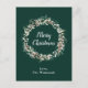 Cette carte postale de Noël amusante et festive peut être personnalisée avec un nom ou un titre. Il comporte une couronne de Noël aquarelle avec des saints rouges et des baies sur un arrière - plan vert foncé. Le texte combine écriture manuscrite et polices serif modernes pour un look élégant et sophistiqué.