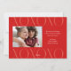 Red Modern XOXO Photo Valentine's Day Holiday Card avec X et O rose et rouge et un nom de signature de script. Le dos a une deuxième photo avec de la place pour votre message.