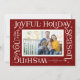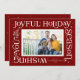 This festive holiday card features the words "wishing you the most joyful holiday season" in a frame around a single photo on the front with space for a second photo on the back. It also has space for your name as well as the year.