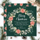 Cette carte de Noël amusante et festive en aquarelle peut être personnalisée avec votre nom de famille. Il comporte une couronne de poinsettias rouges et sainte sur un arrière - plan vert foncé. Le texte combine écriture manuscrite et polices serif pour un look élégant et sophistiqué.